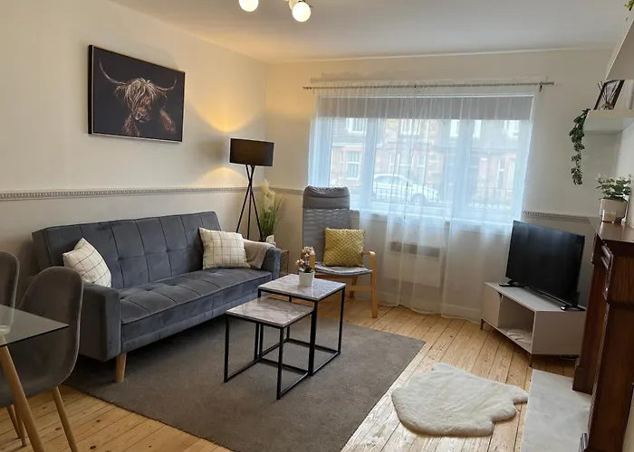 Dieses Apartment bietet seinen Gästen die Annehmlichkeiten von Selbstversorgern, wie eine voll ausgestattete Küchenzeile und einen Essbereich. Die Fahrt zum internationalen Flughafen Glasgow International dauert etwa 25 Minuten mit dem Auto.